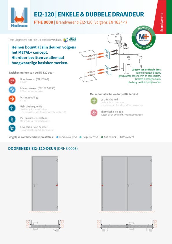 De Heinen-deuren kunnen de prestaties combineren. Volgens uw behoeften kunnen aan de kwalitatieve Metal+ basisdeur nog één of meerdere prestaties worden toegevoegd. Zo kan een brandvertragende deur gecombineerd worden tot RC5 inbraakwerend.